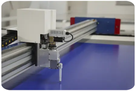 The BR250PLS cutting plotter is a high-precision machine designed for large-format material cutting. With a static table measuring 2500 mm x 3000 mm, it provides a stable surface ideal for industrial applications such as vehicle graphics, large-scale labels, and complex prototypes.